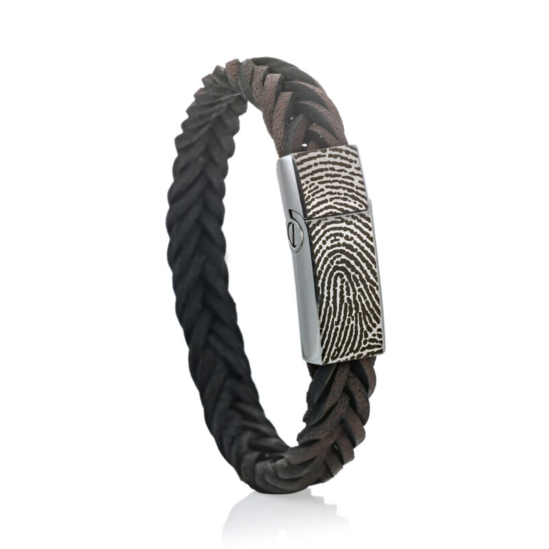 AA-L001-G00 Leren armband met vingerafdruk – Gedenksieraad in zilver of edelstaal