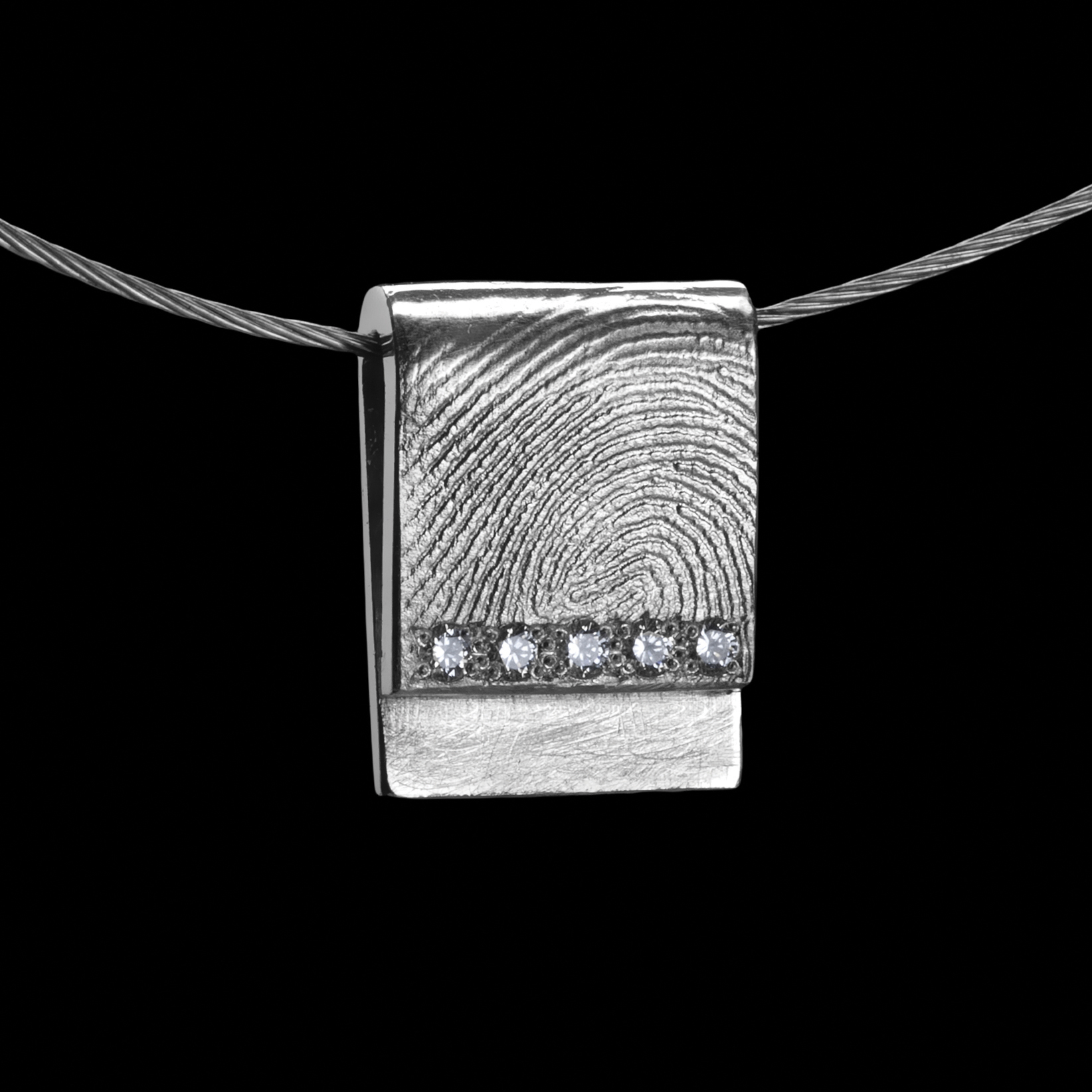Op elk sieraad is een willekeurige afdruk afgebeeld. Het sieraad kan met elke afdruk vervaardigd worden: vingerafdruk, handpalmafdruk, dierenpoot afdruk, etc. Het sieraad wordt vervaardigd met de door u geleverde afdruk. U kunt een gratis afdruksetje aanvragen bij uw bestelling. Mocht al een afdruk hebben dan kan deze gebruikt worden. Wij kunnen werken met alle soorten afdrukmassa: was, inkt, rubber.