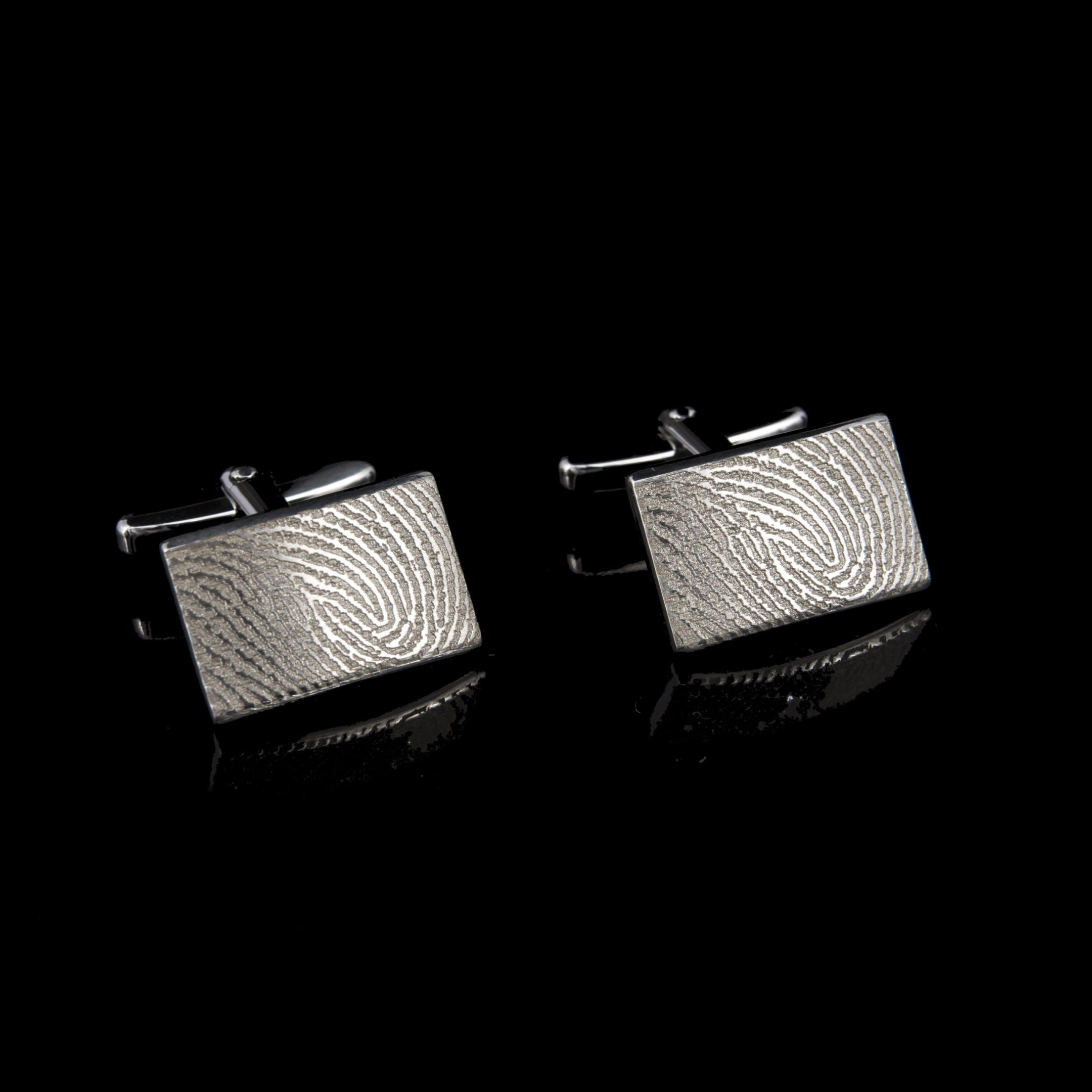 Manchetknopen met daarop de afdruk van uw dierbare. Dit kan een afdruk zijn van een vinger, hand, dierenpoot, babyhandje of babyvoetje. Wij kunnen met alle afdrukken overweg: inkt, was, rubber, etc.