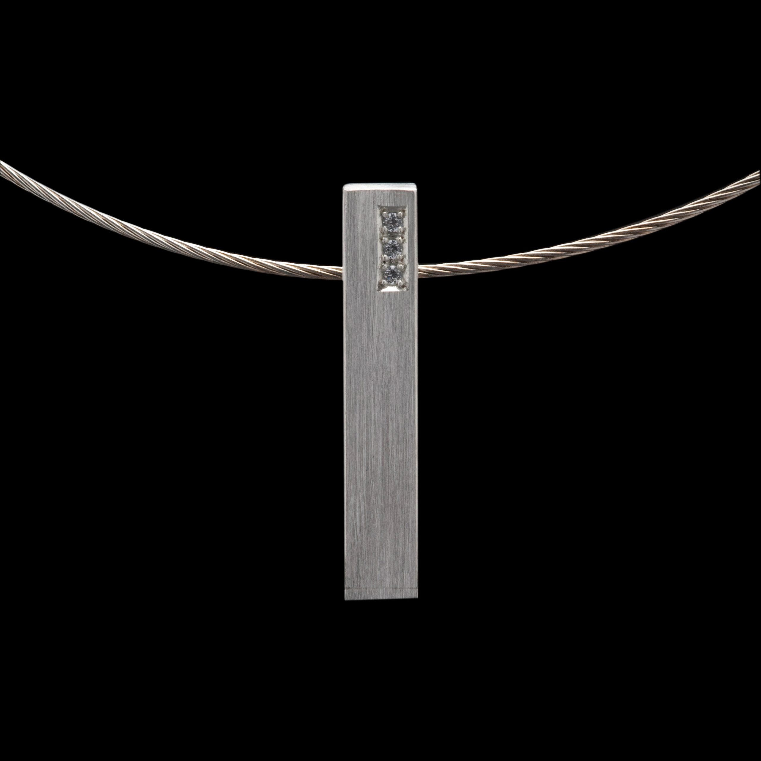 Rechthoekige ashanger met 3 pave gezette stenen. De ketting gaat door de hanger heen (gat 3mm). De hanger heeft onderaan een schroefdopje.