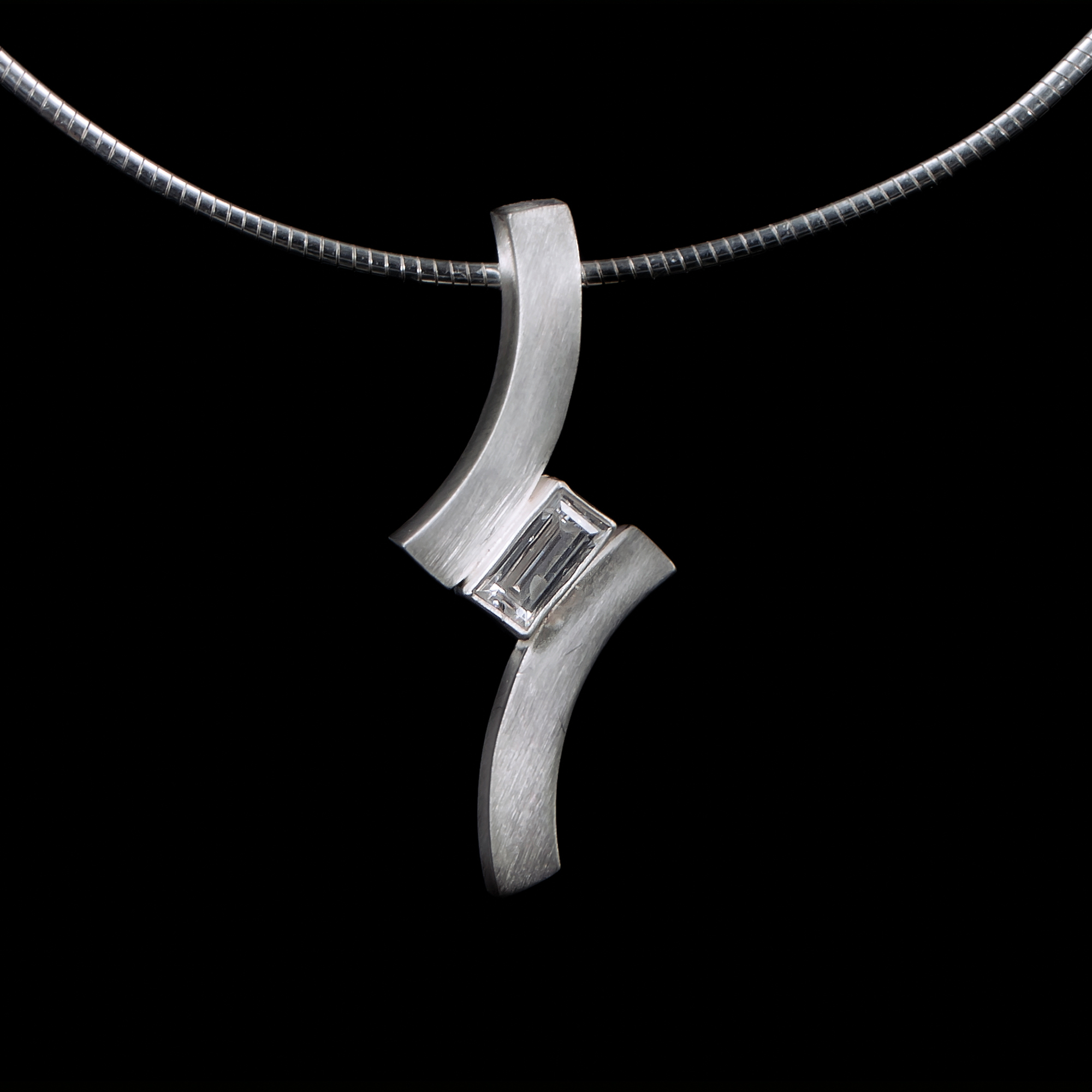 Hanger met rechthoekige zirkonia 6x3mm. Het hangeroog zit achterop de hanger. De hanger heeft onderaan een schroefdopje.