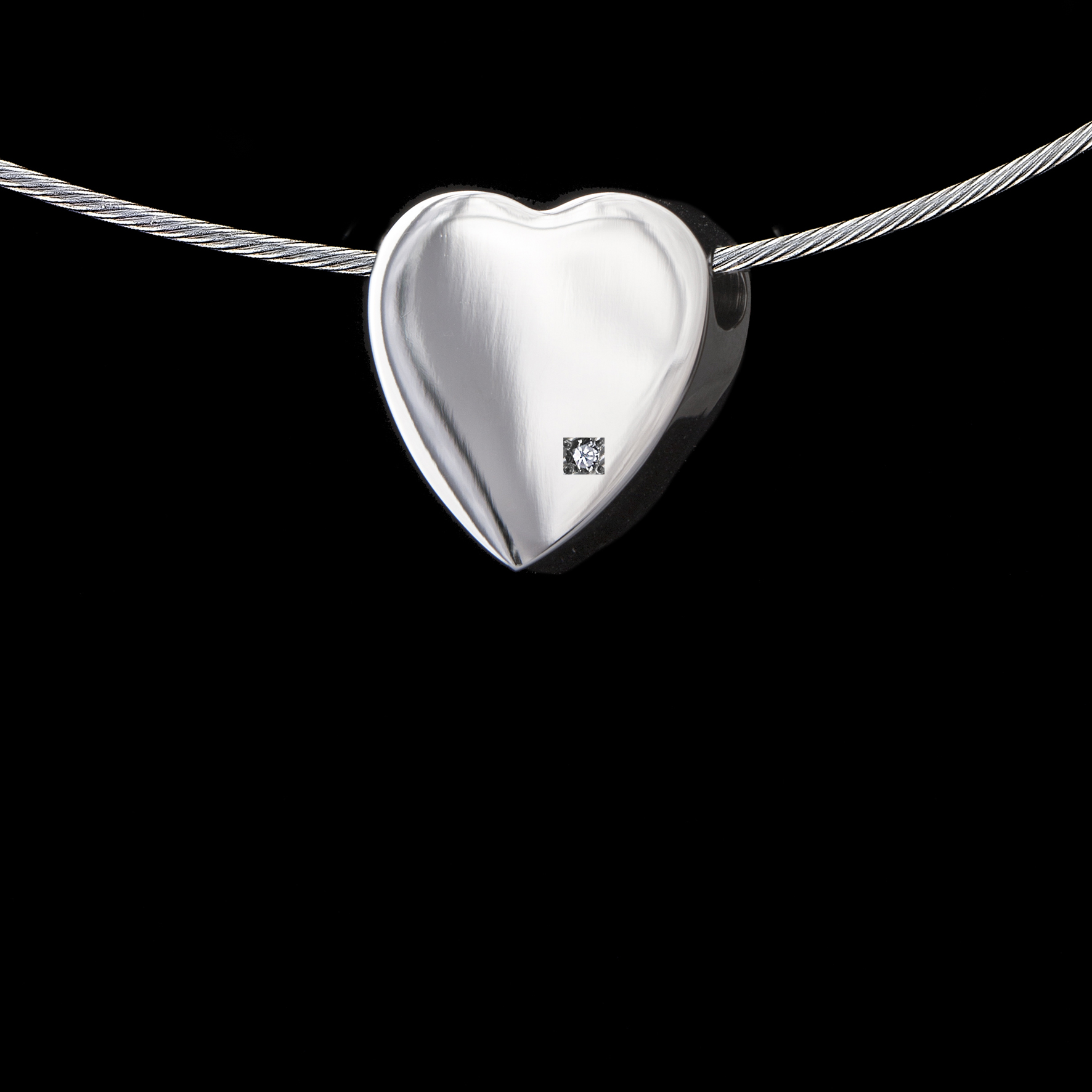 Zilveren hartvormige ashanger met schroefdopje.