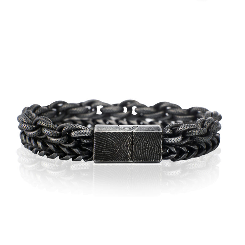 AA-U096-G00 Zwarte edelstalen armband met vingerafdruk