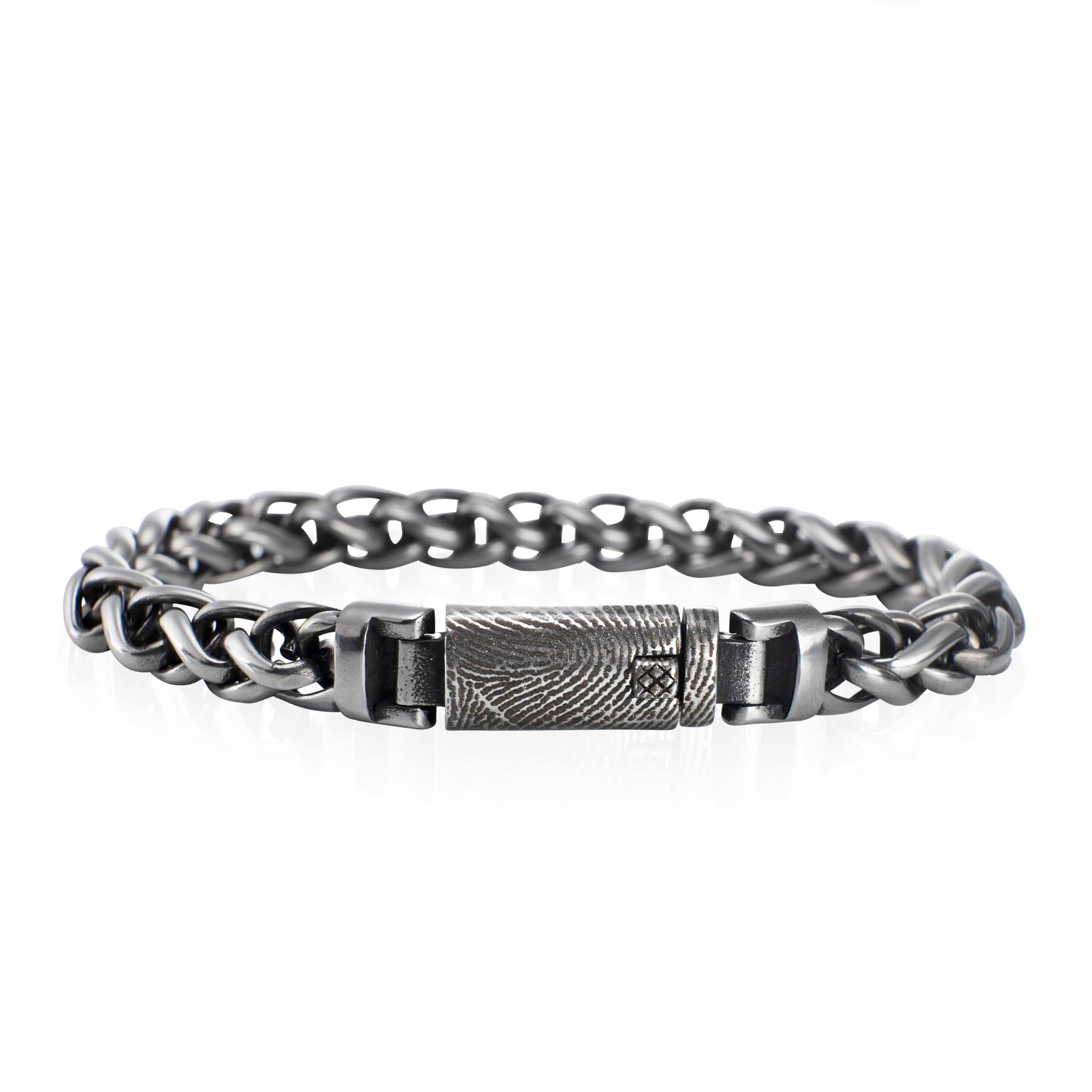 Edelstalen gevlochten armband een vingerafdruk.Â