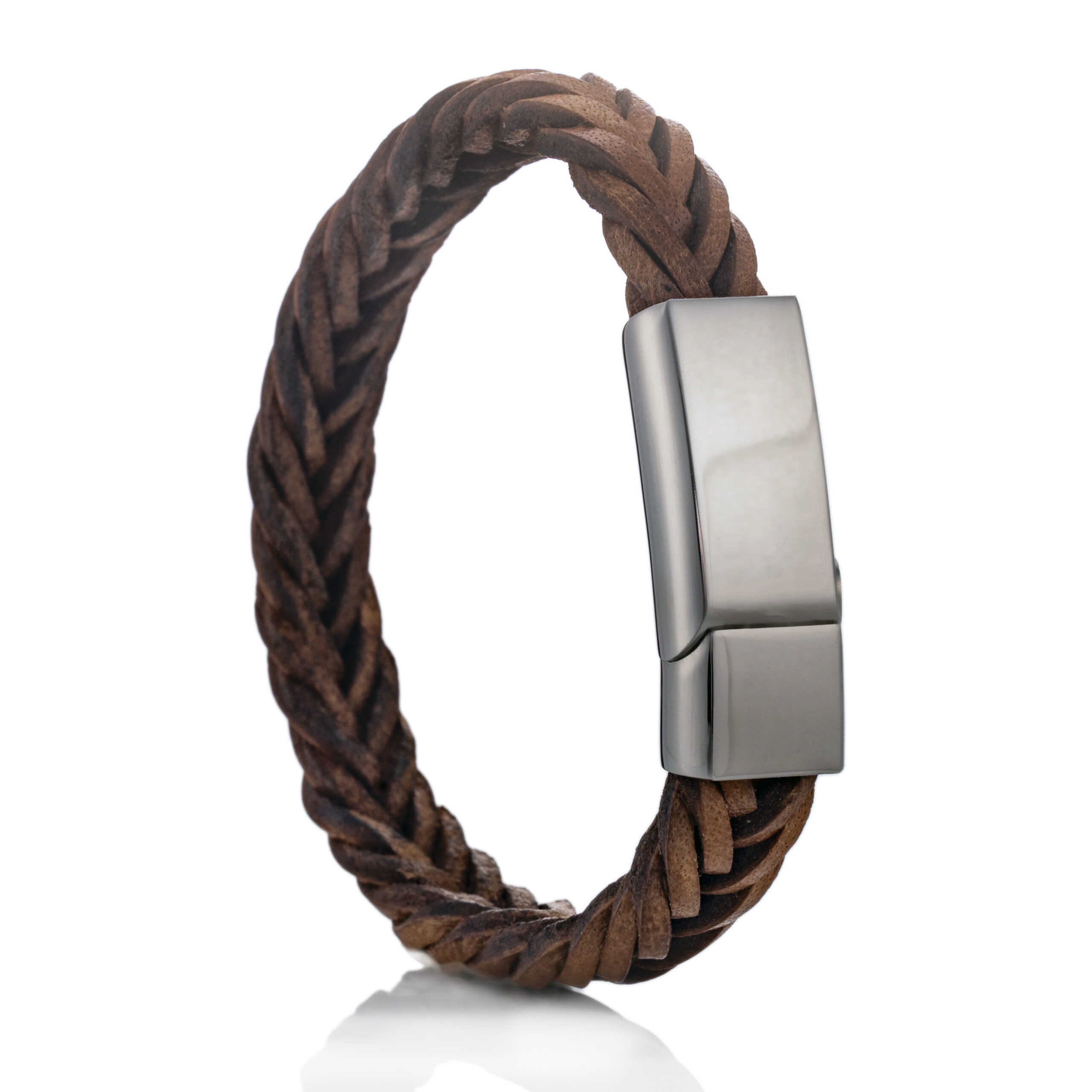 Leren Armband met Edelstalen Askamer – Stijl en Herinnering Gecombineerd
