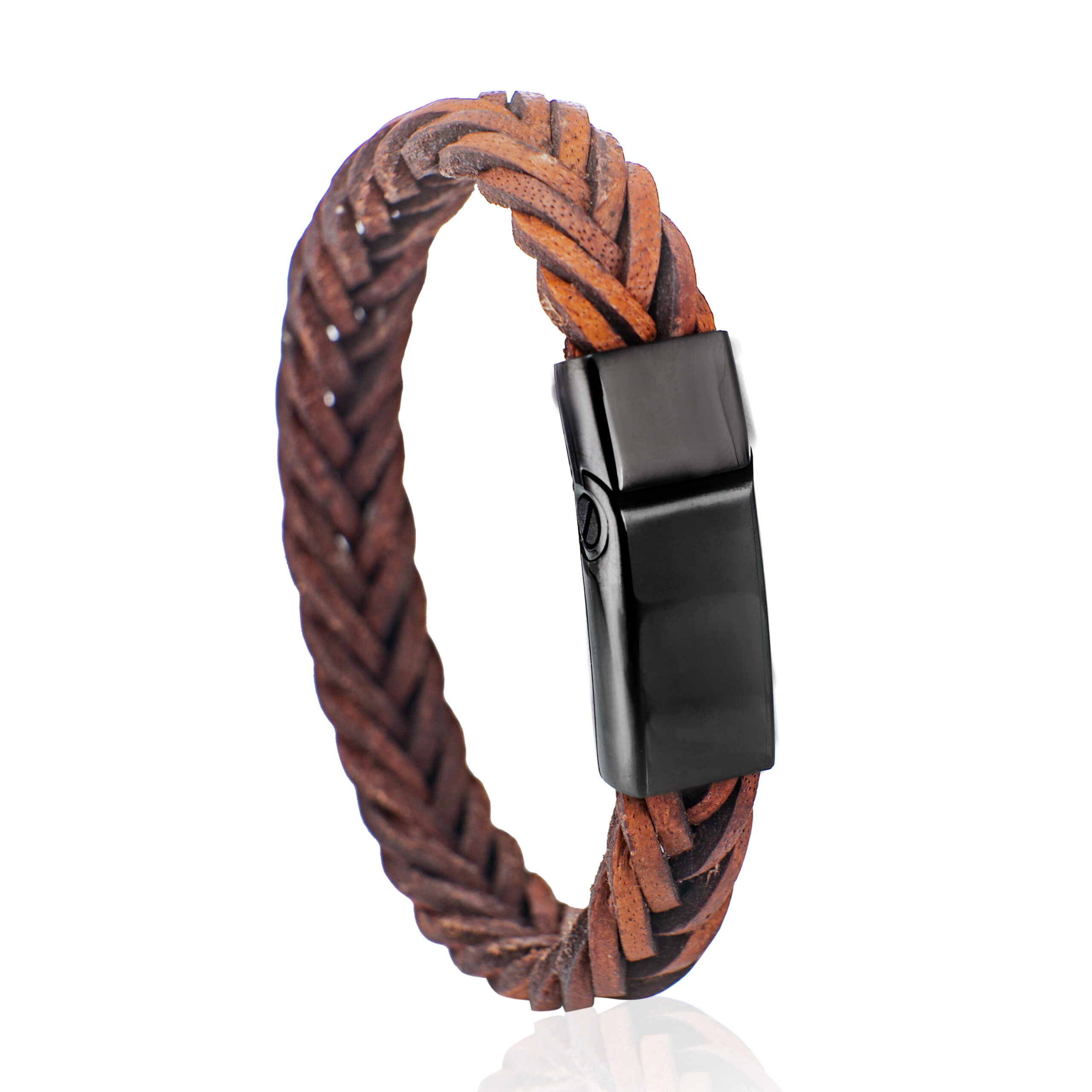 AS-L191-G00 Leren Armband met zwarte Edelstalen Askamer – Stijlvol en Persoonlijk. Kleur: 302