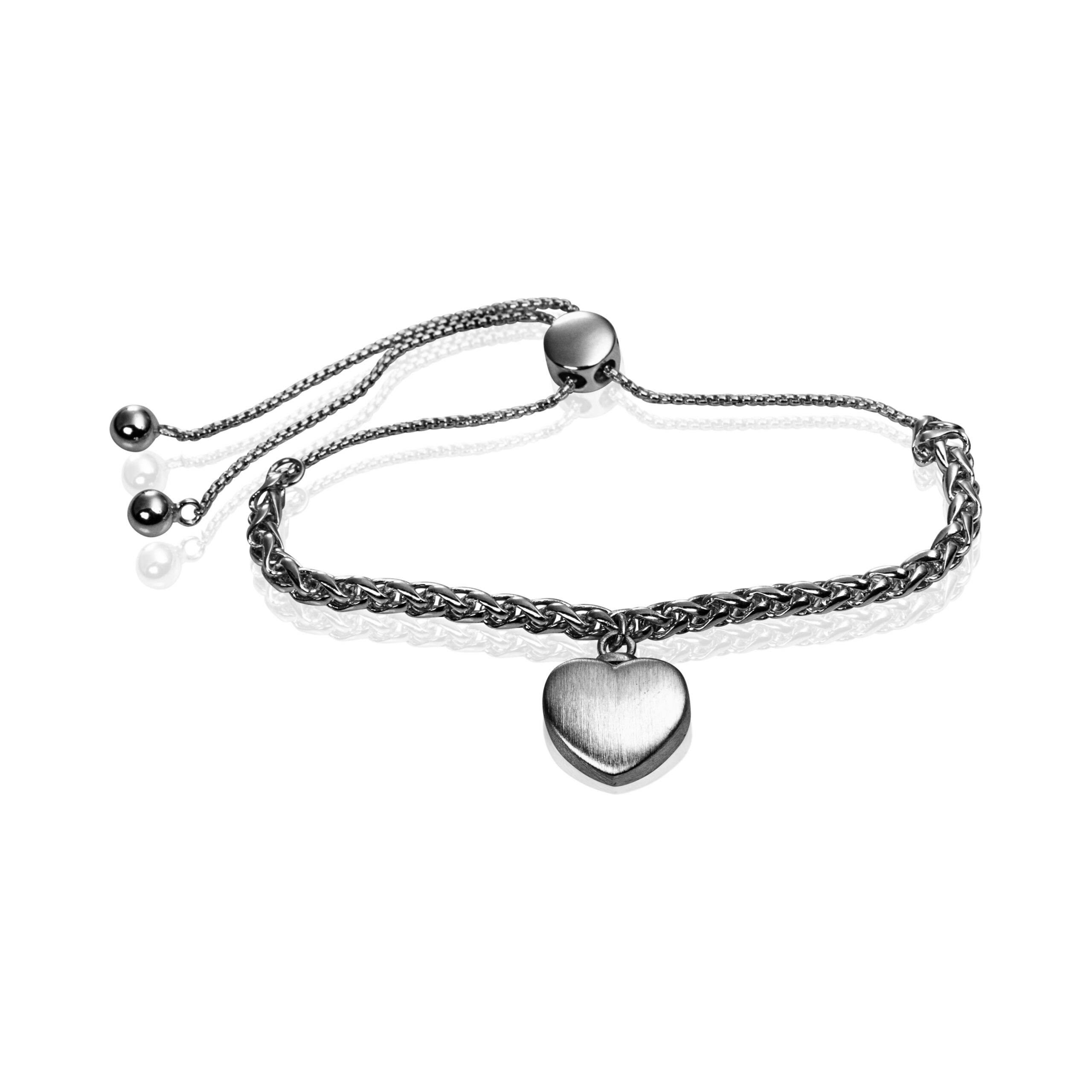 Zilveren gevlochten verstelbare armband met harthanger met schroefdopje.