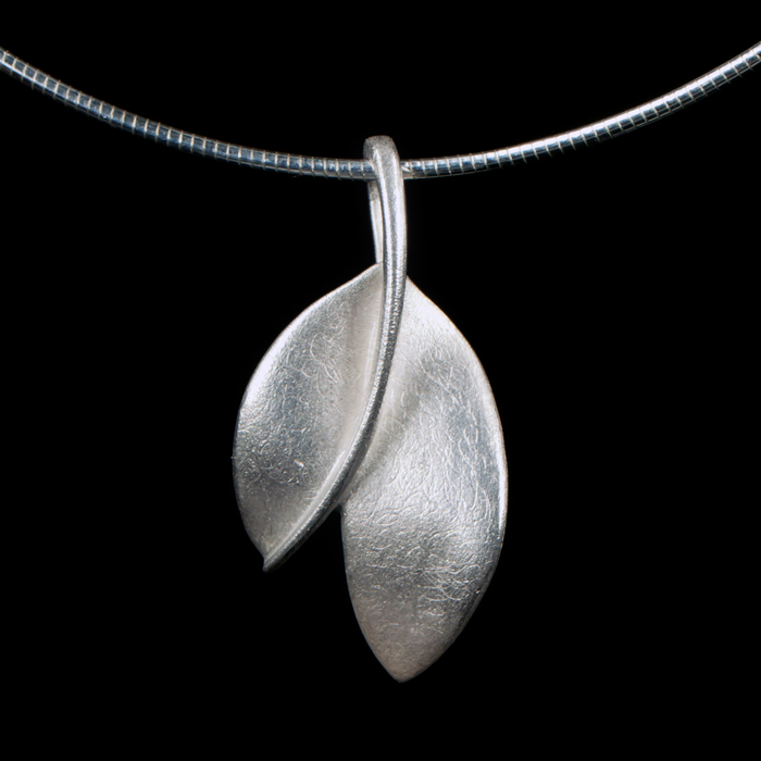 Design blad ashanger met asbuisje met schroefdop. De hanger is mat met een glanzende draad ophanging.