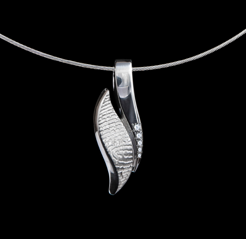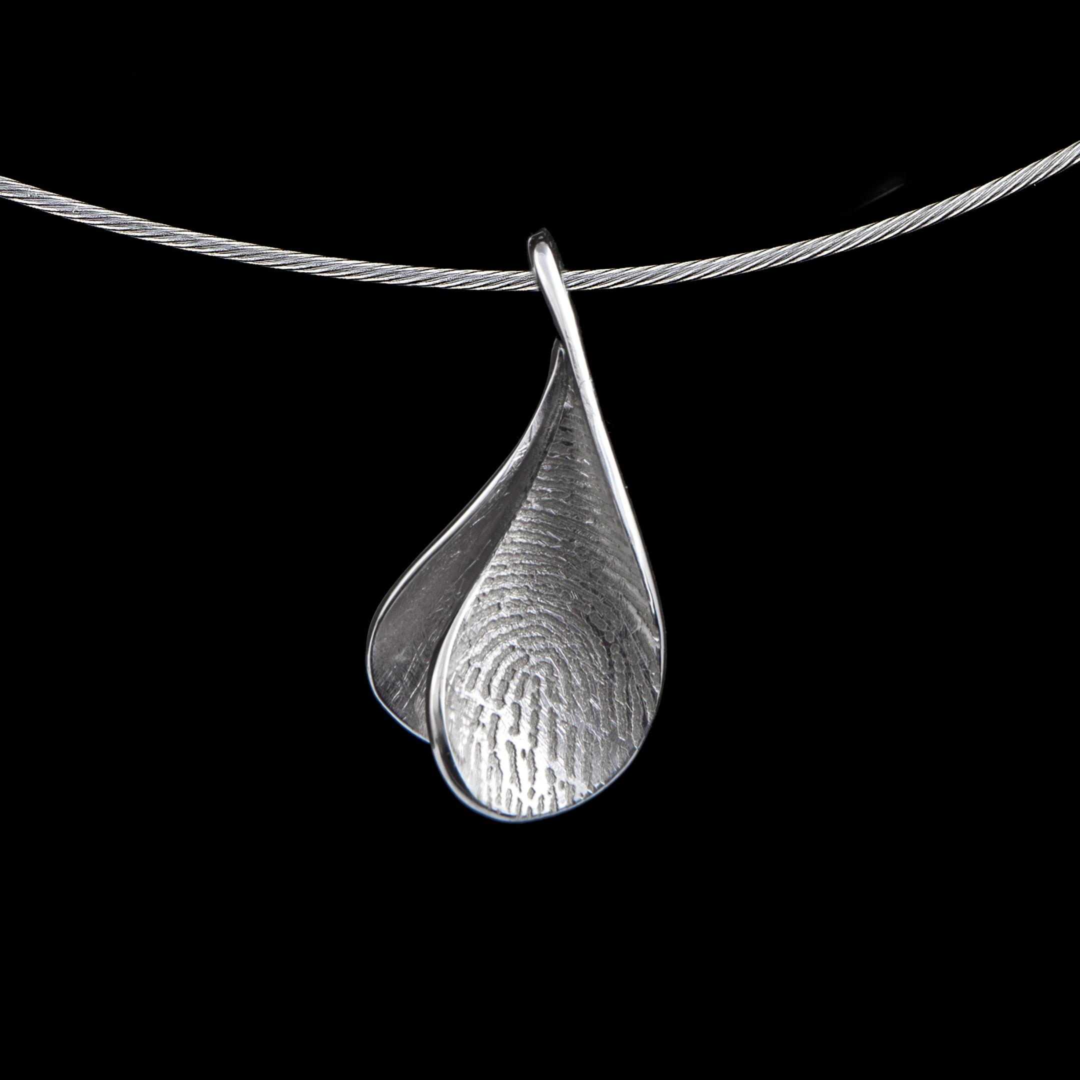 Op elk sieraad is een willekeurige afdruk afgebeeld. Het sieraad kan met elke afdruk vervaardigd worden: vingerafdruk, handpalmafdruk, dierenpoot afdruk, etc. Het sieraad wordt vervaardigd met de door u geleverde afdruk. U kunt een gratis afdruksetje aanvragen bij uw bestelling. Mocht al een afdruk hebben dan kan deze gebruikt worden. Wij kunnen werken met alle soorten afdrukmassa: was, inkt, rubber.