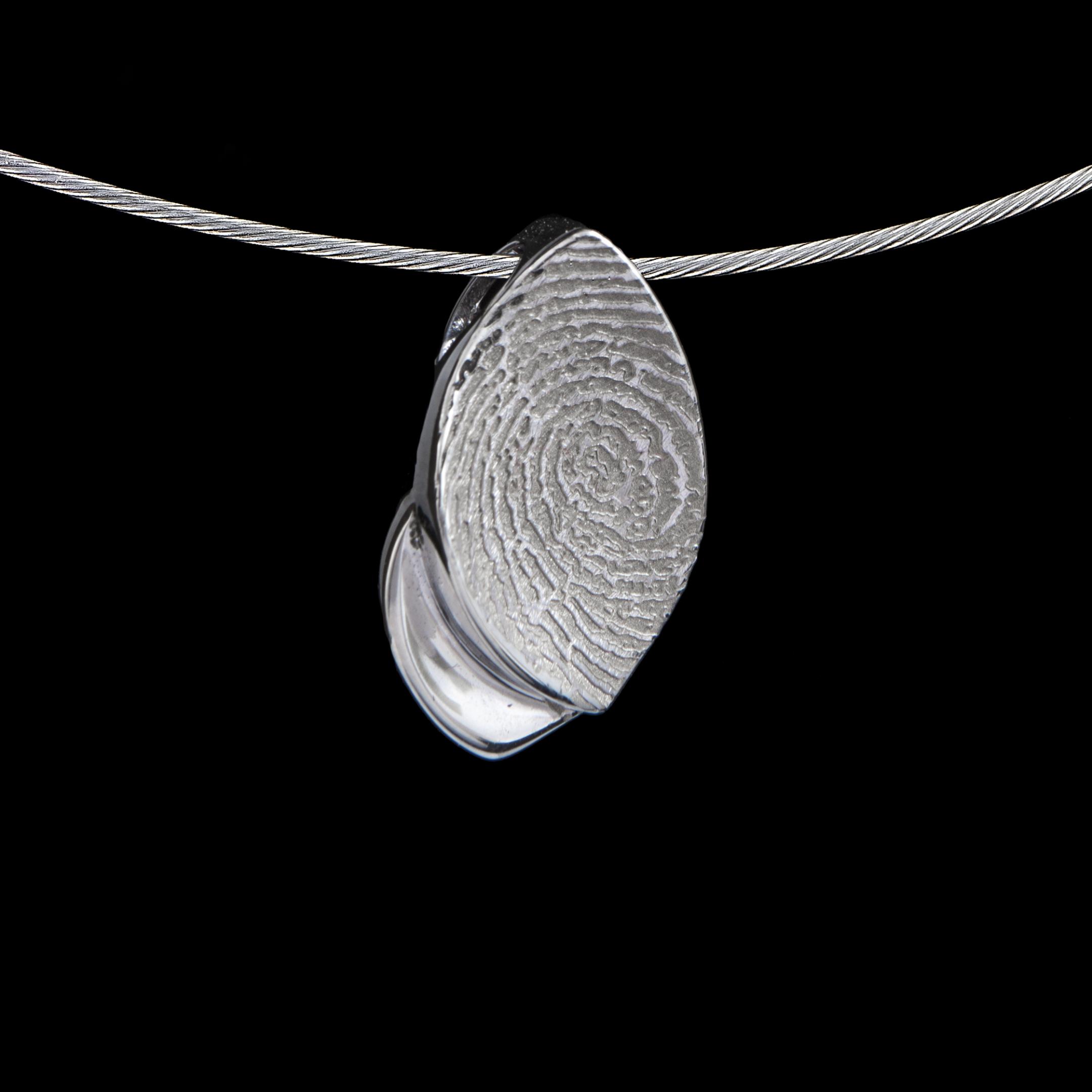 Op elk sieraad is een willekeurige afdruk afgebeeld. Het sieraad kan met elke afdruk vervaardigd worden: vingerafdruk, handpalmafdruk, dierenpoot afdruk, etc. Het sieraad wordt vervaardigd met de door u geleverde afdruk. U kunt een gratis afdruksetje aanvragen bij uw bestelling. Mocht al een afdruk hebben dan kan deze gebruikt worden. Wij kunnen werken met alle soorten afdrukmassa: was, inkt, rubber.
