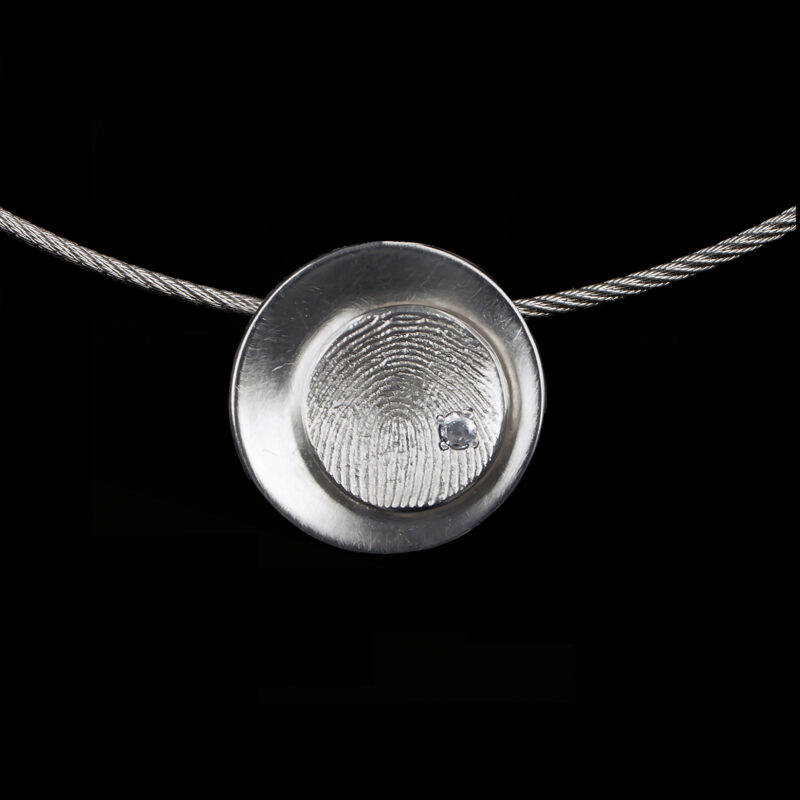 Op elk sieraad is een willekeurige afdruk afgebeeld. Het sieraad kan met elke afdruk vervaardigd worden: vingerafdruk, handpalmafdruk, dierenpoot afdruk, etc. Het sieraad wordt vervaardigd met de door u geleverde afdruk. U kunt een gratis afdruksetje aanvragen bij uw bestelling. Mocht al een afdruk hebben dan kan deze gebruikt worden. Wij kunnen werken met alle soorten afdrukmassa: was, inkt, rubber.