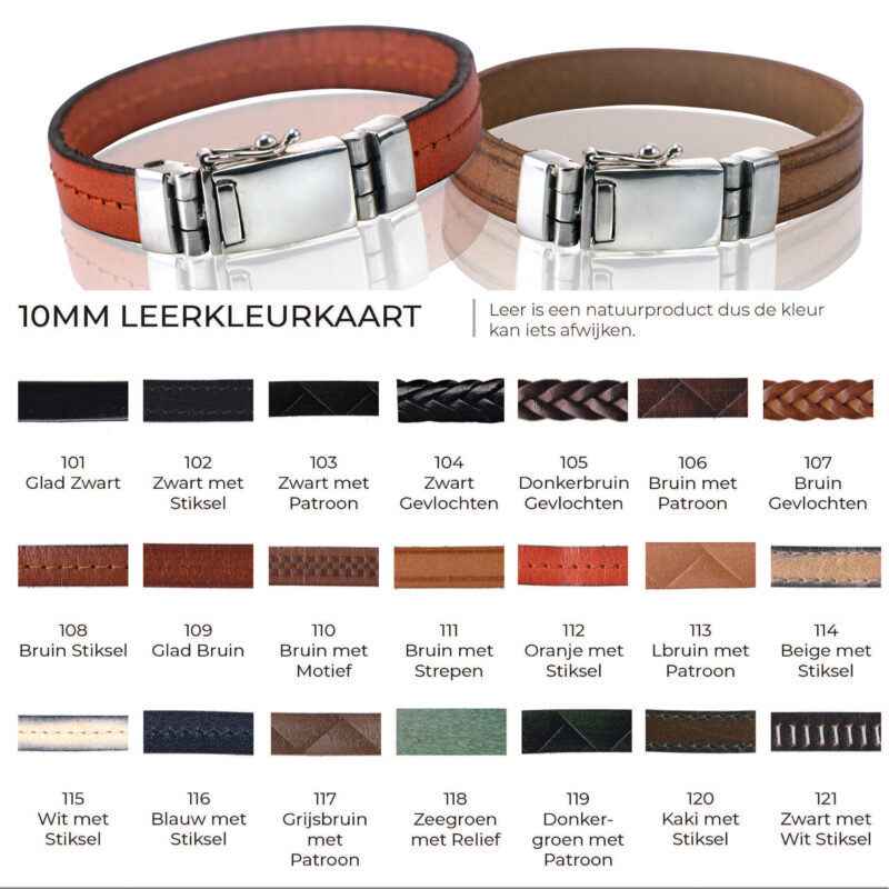 AS-L082-G00 Leren armband met zilver bakslot met schroefdop. Kies een kleur.